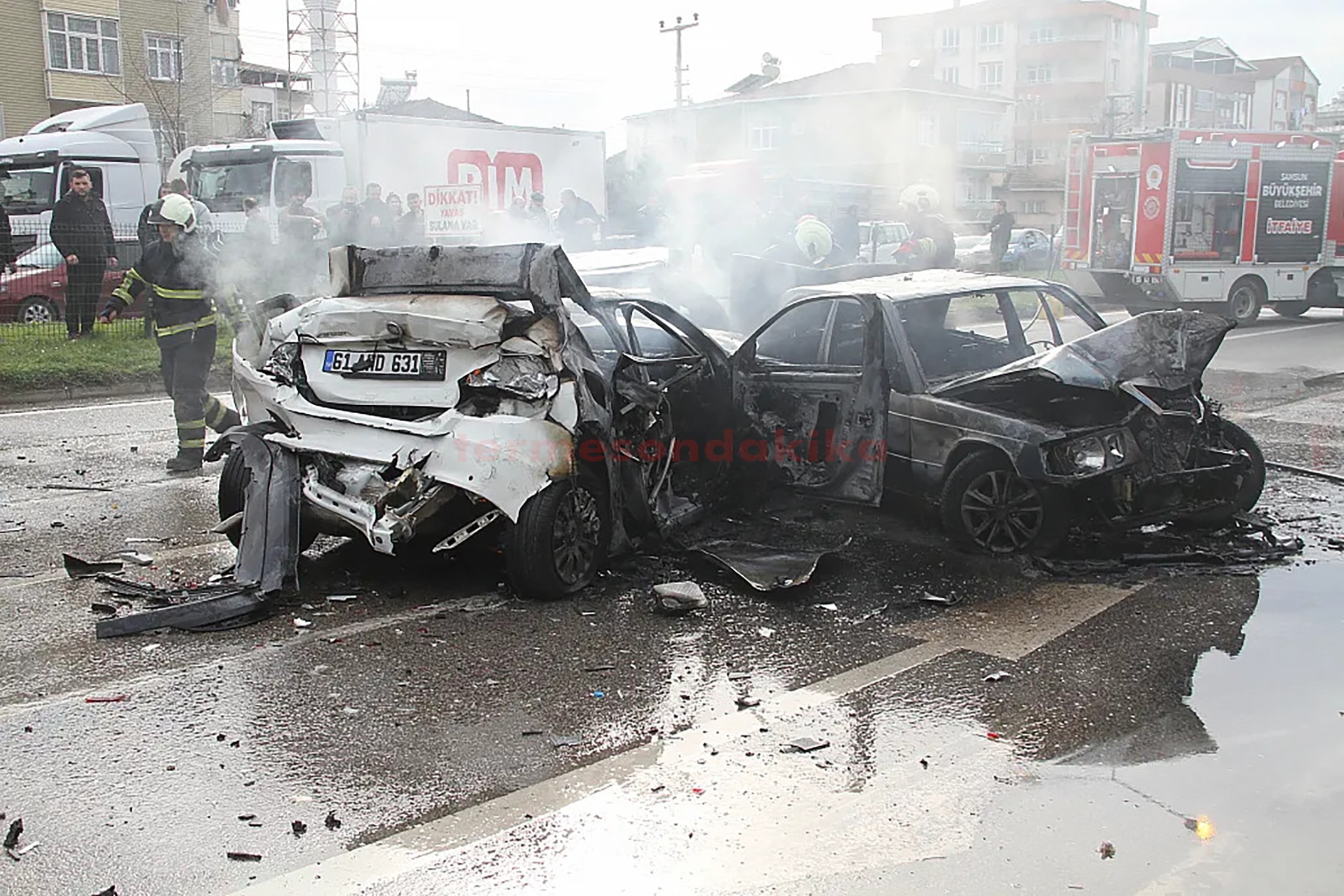 ÇARŞAMBA'DA 6 ARAÇLI ZİNCİRLEME KAZA: 3 ARAÇ YANDI, 4 YARALI