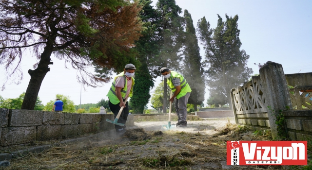 Terme Belediyesi Park Bahçeler Müdürlüğü'ne bağlı ekipler Ramazan Bayramı öncesi mezarlıklarda temizlik ve çevre düzenleme çalışmalarına devam ediyor.
