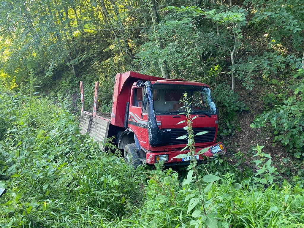 Terme’de uçuruma yuvarlanan tomruk yüklü kamyondan atlayan sürücü, savrulan tomrukların çarpması sonucu olay yerinde hayatını kaybetti.